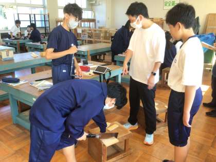 14学級の技術です。自分のこだわりを実現するために、自分で考えて製作活動を行っています。