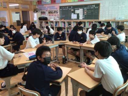 31学級です。合唱をより良くするための話し合いをしています。