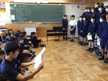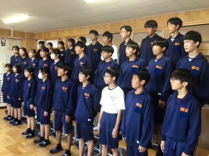 来週の合唱コンクールに向けて、今日から帰りの時間に合唱練習が行われます。学年を超えての歌い合わせも始まりました。26学級と37学級の歌い合わせの様子です。