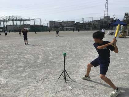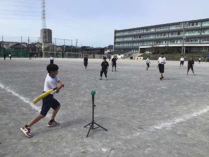 15・16学級の体育です。ティーボールに取り組んでいます。