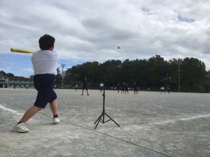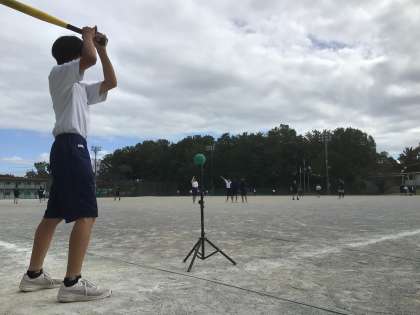 15・16学級の体育です。ティーボールに取り組んでいます。