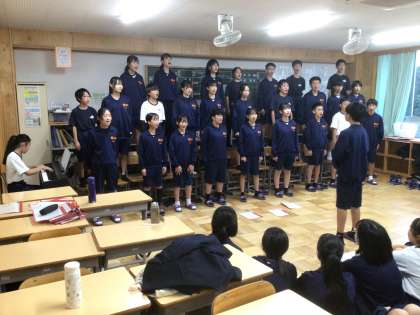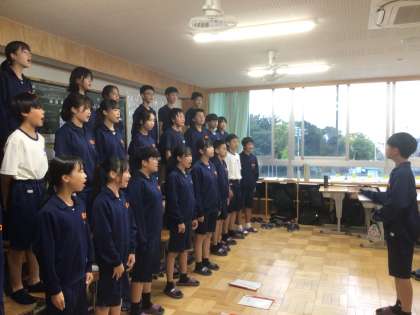 10/22(火)合唱練習1 公開日 2024/10/22 更新日 2024/10/22 輝く朝中生! 18学級と28学級の歌い合わせです。18学級の生徒が「HEIWAの鐘」を28学級の先輩に披露しています。 1年 2年