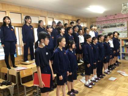 10/22(火)合唱練習4 公開日 2024/10/22 更新日 2024/10/22 輝く朝中生! 17学級と27学級の歌い合わせです。17学級の生徒が「COSMOS」を27学級の先輩に披露しています。 1年 2年