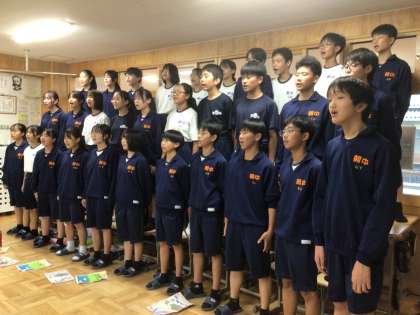 10/22(火)合唱練習5 公開日 2024/10/22 更新日 2024/10/22 輝く朝中生! 17学級と27学級の歌い合わせです。27学級の生徒が「予感」を17学級の後輩に披露しています。 1年 2年