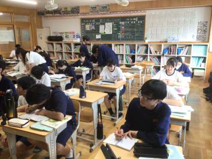 33学級の数学です。テストに向けて二次関数の問題に取り組んでいます。