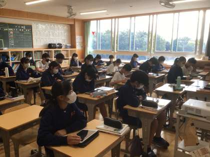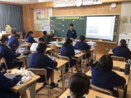 24学級の理科です。自分の調べた生物の生き抜き術を発表しています。