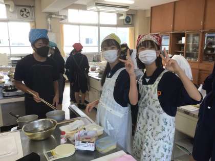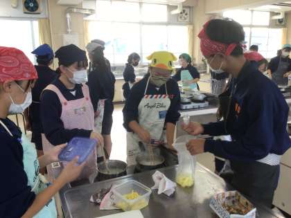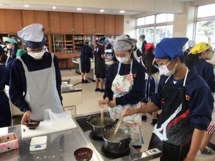 27学級の家庭科です。調理実習をしています。
