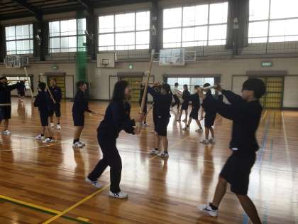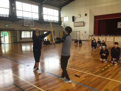 21・22学級の体育です。2年生の体育は、剣道の学習をしています。