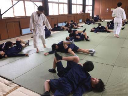 15・16学級の体育です。1年生の体育は、柔道の学習をしています。