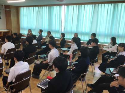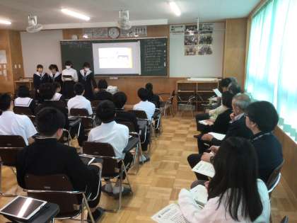 11/6(水)授業の様子1 公開日 2024/11/06 更新日 2024/11/06 輝く朝中生! 38学級の社会です。これまで「豊田市博物館の魅力を使った朝日丘のまちづくりを提案しよう」をテーマに探究学習を進めてきました。今日は、朝日丘地域会議に携わっている方や市役所の方を招いて、実際に生徒が考えたまちづくりを提案しました。 3年