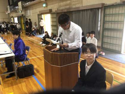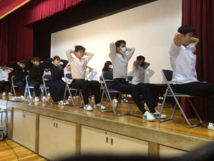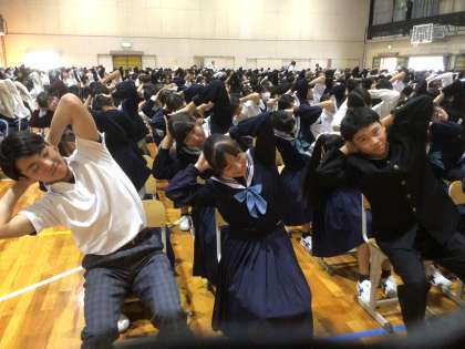11/6(水)学校保健大会1 公開日 2024/11/06 更新日 2024/11/06 輝く朝中生! 保健委員が企画・運営する学校保健大会です。保健委員を見本として、姿勢が良くなる体操を体験しています。