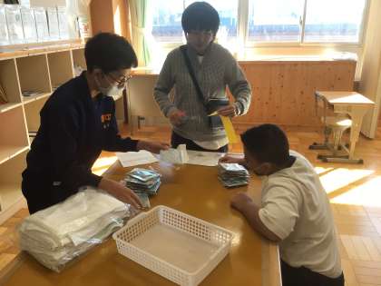 1・2・3・4・5・6学級です。明日の学校バザーに向けての準備をしています。