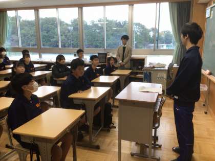 11/8(金)朝の様子1 公開日 2024/11/08 更新日 2024/11/08 輝く朝中生! 3年生が1年生の教室へ行き、テスト勉強の仕方や課題の取り組み方などを1年生へ伝えています。1年生のみなさんは、先輩の勉強への取組を参考に、来週のテストに向けてがんばりましょう。 1年 3年
