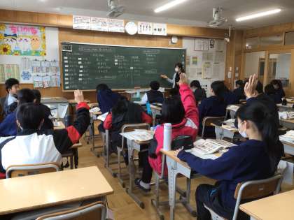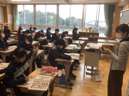 24学級の家庭科です。郷土料理の特徴について気づいたことを発表しています。