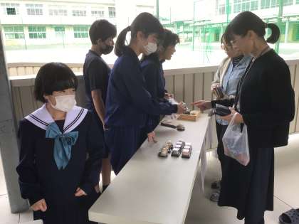 1・2・3・4・5・6学級の生徒が、自分たちで作成した商品を販売する学校バザーを行っています。