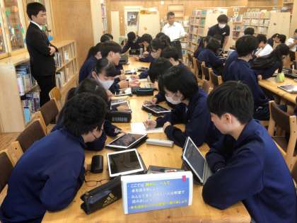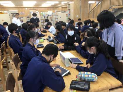 図書委員会です。全校生徒が楽しめる図書館クイズを考えています。