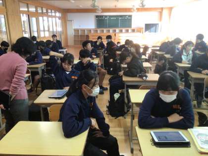 給食委員会です。給食の配膳時間を短くする取組について考えています。