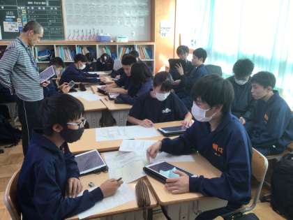防災安全委員会です。来週、全校で行う防災学習会の準備を進めています。
