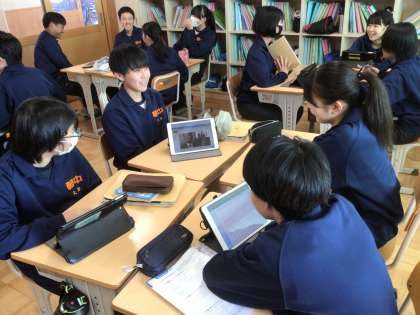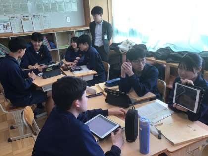 38学級の英語です。後置修飾を使って、自分の尊敬する人物を英語で説明しています。