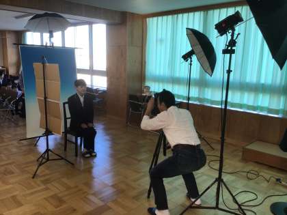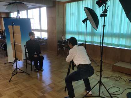 本日、3年生は卒業アルバム用の個人写真を撮影しています。