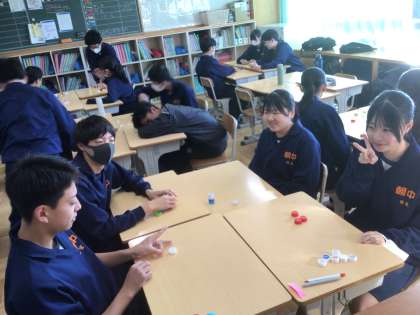 11/28(木)短学活の様子2 公開日 2024/11/28 更新日 2024/11/28 輝く朝中生! 本日の短学活は、リサイクル活動で回収したペットボトルキャップを使って、体育福祉委員会が企画したレクリエーションを行っています。写真は32学級の様子です。 3年