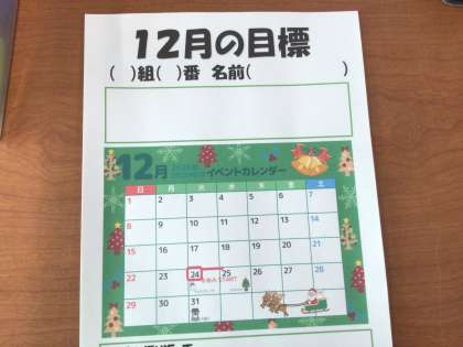 18学級です。12月の目標を考えています。2024年を気持ちよく締めくくりましょう。