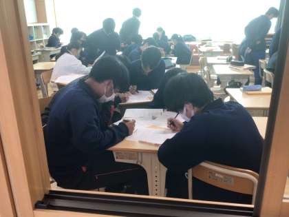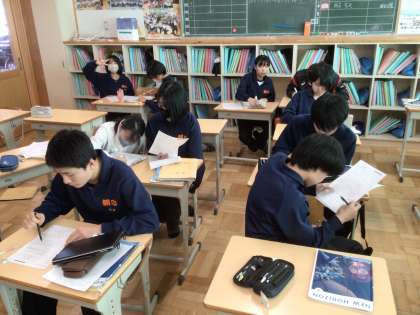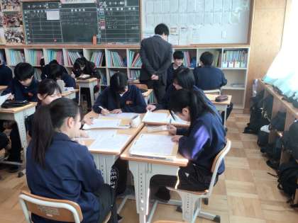 38学級の英語です。仲間と協力しながら問題を解いています。