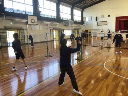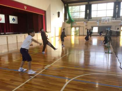 33・34学級の体育です。バドミントンに取り組んでいます。