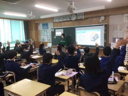 12/6(金)1年生SDGs講演会5 公開日 2024/12/06 更新日 2024/12/06 輝く朝中生! 「セブン イレブン ジャパン」の講師の方からお話を聞いています。食品ロスへの取組について学んでいます。 1年