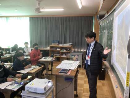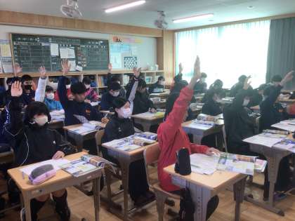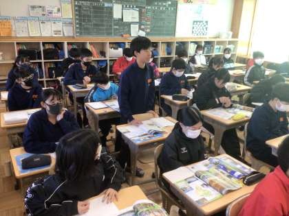 16学級の社会です。南アメリカについて知っていることを発表しています。