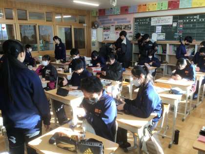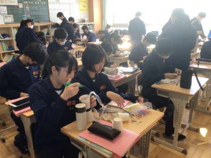 31学級の家庭科です。子どもが喜ぶおもちゃを作っています。