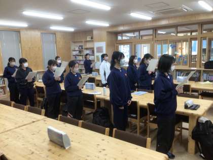 放送部の活動の様子です。発声練習をしています。しっかり声が出ています。