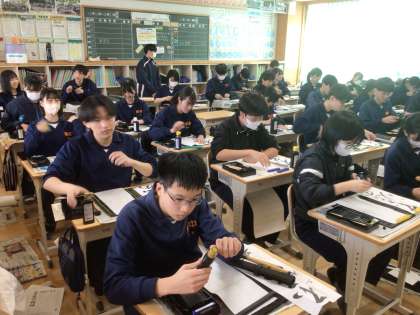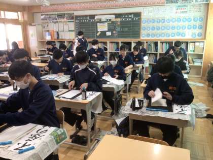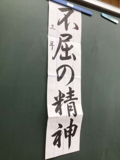 12/13(金)授業の様子1 公開日 2024/12/13 更新日 2024/12/13 輝く朝中生! 35学級の国語です。書き初めの学習をしています。3年生の文字は「不屈の精神」です。 義務教育が終わり、自分自身で道を拓いていく時期です。目標達成のために、困難や苦難にもくじけず行動し続ける強い意志をもちましょう。 3年