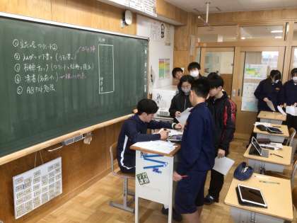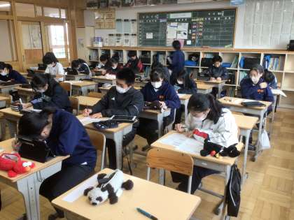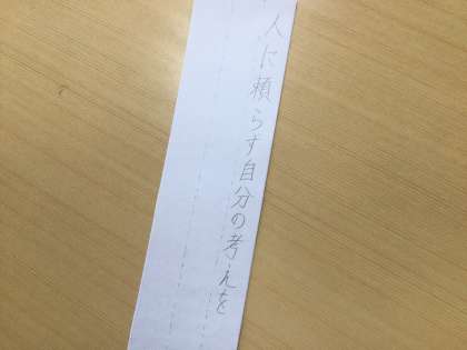 25学級です。自然教室の立志式に向けて、自分の決意を考え、短冊に書いています。