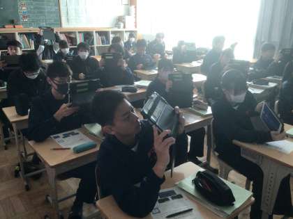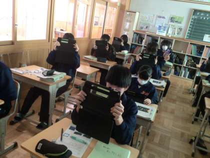 12/17(火)授業の様子1 公開日 2024/12/17 更新日 2024/12/17 輝く朝中生! 32学級の理科です。星座アプリのAR技術を使って、昼の空に広がる星座を学習用タブレットを通して観察しています。 3年