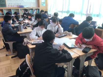 12/19(木)委員会の様子4 公開日 2024/12/19 更新日 2024/12/19 輝く朝中生! 防災安全委員会です。先月の防災学習では、みなさんのおかげで全校生徒が充実した学習ができました。次は、朝中式防災リュックの中身を考えています。 委員会