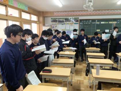 12/20(金)授業の様子3 公開日 2024/12/20 更新日 2024/12/20 輝く朝中生! 3年生です。卒業の歌である「友〜旅立ちの時〜」をパートごとに練習しています。写真はバスの様子です。 3年
