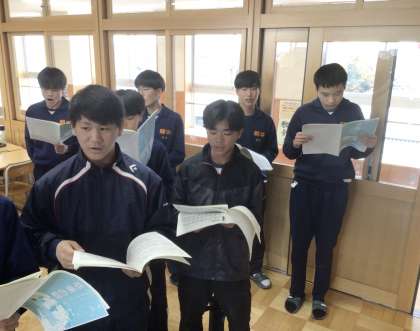 12/20(金)授業の様子4 公開日 2024/12/20 更新日 2024/12/20 輝く朝中生! 3年生です。卒業の歌である「友〜旅立ちの時〜」をパートごとに練習しています。写真はテノールの様子です。 3年