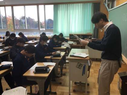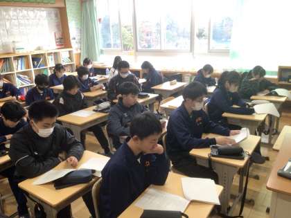 12/20(金)授業の様子8 公開日 2024/12/20 更新日 2024/12/20 輝く朝中生! 2年生です。3年生を送る会の準備を進めています。写真は思い出劇の係の様子です。演者としての心得を学んでいます。 2年