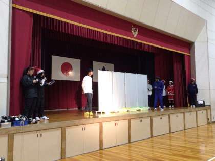 12/23(月)1年生学年集会2 公開日 2024/12/23 更新日 2024/12/23 輝く朝中生! 1年生が冬休み前の学年集会をしています。学級委員企画のレクリエーションをしています。みんな楽しそうです。 1年