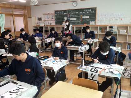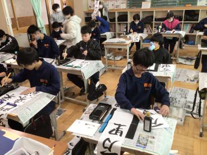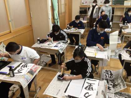 1〜6学級です。集中して書き初めに取り組んでいます。