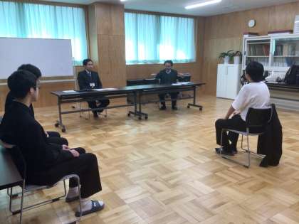 1/7(火)高校入試面接練習 公開日 2025/01/07 更新日 2025/01/07 輝く朝中生! まもなく高校入試を迎える3年生を対象に、全教員で面接練習を実施しました。生徒は緊張しながらも、これまで練習してきた成果を発揮し、堂々と受け答えができました。 3年