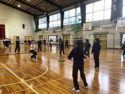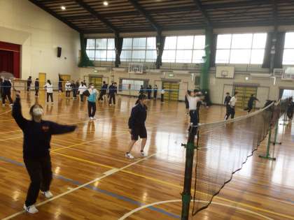 21・22学級の体育です。寒さに負けず、元気にバドミントンをしています。