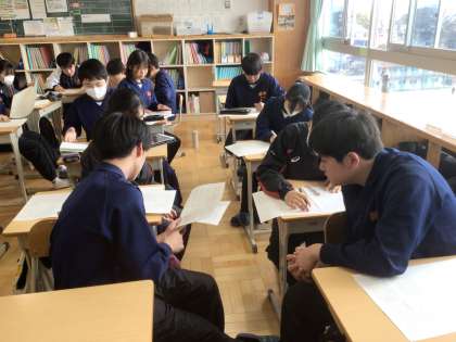 36学級の国語です。グループで協力して入試の過去問に挑戦しています。