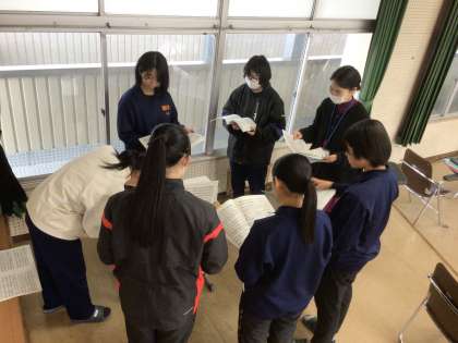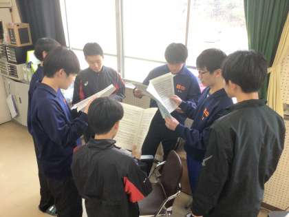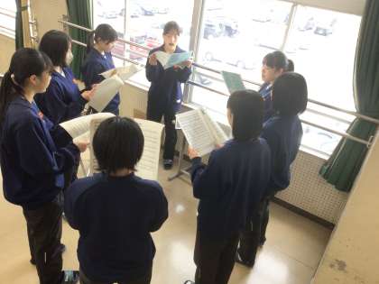 38学級の音楽です。卒業の歌「友」のパート練習をしています。
