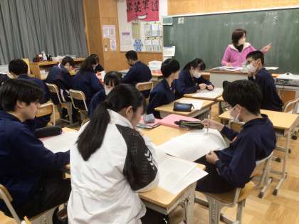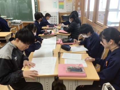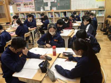 31学級の国語です。グループで協力して入試の過去問に挑戦しています。