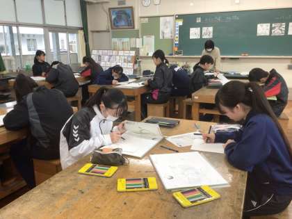 37学級の美術です。点描画を描いています。