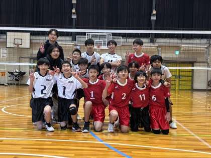 1/30(木)部活動大会結果1 公開日 2025/01/30 更新日 2025/01/30 輝く朝中生! 男子バレーボール部です。 1月26日(日)豊田・みよし1年生バレーボール大会 敢闘賞 自然教室で2年生がいない中で、会場運営をしながら、最後まで全力で戦い抜きました。今後の成長が楽しみです。 1年 部活動