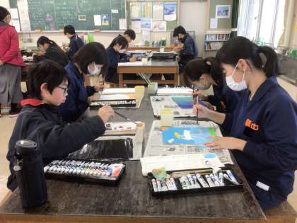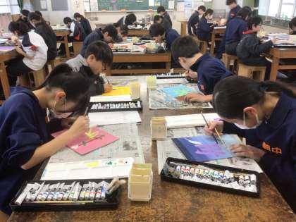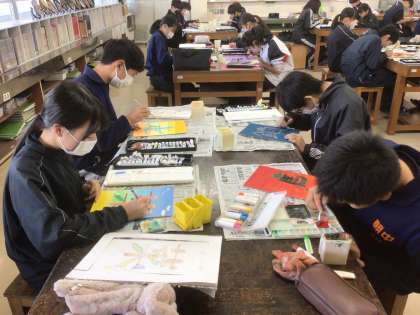 18学級の美術です。個性豊かな絵文字を作っています。