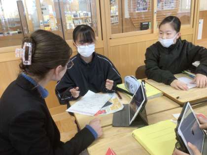 2/4(火)Try English1 公開日 2025/02/04 更新日 2025/02/04 輝く朝中生! 本日、他校のALTの先生が来校し、1年生の英語の授業に参加しています。この1年間で学んだ英語を使って、自分のおすすめスポットについて伝えたり、質問したりしています。写真は17学級です。 1年